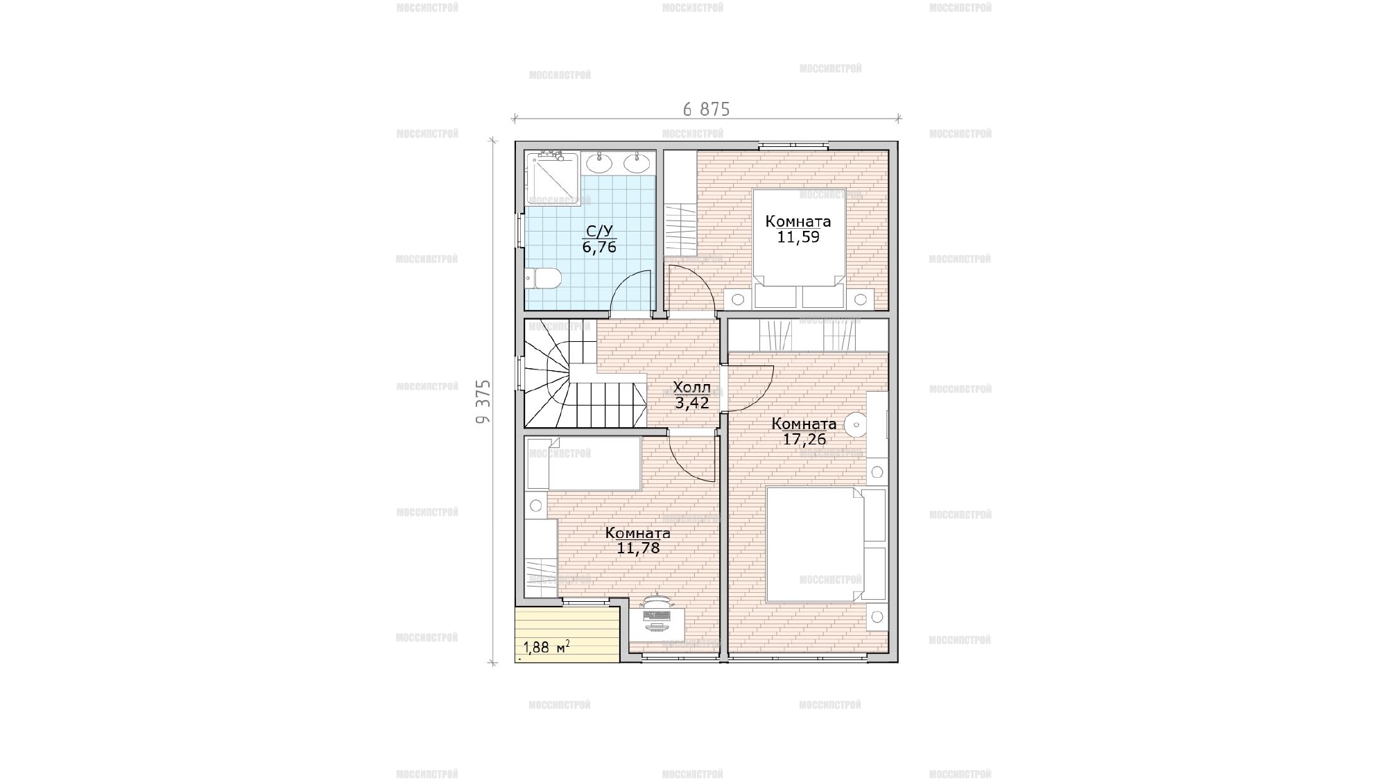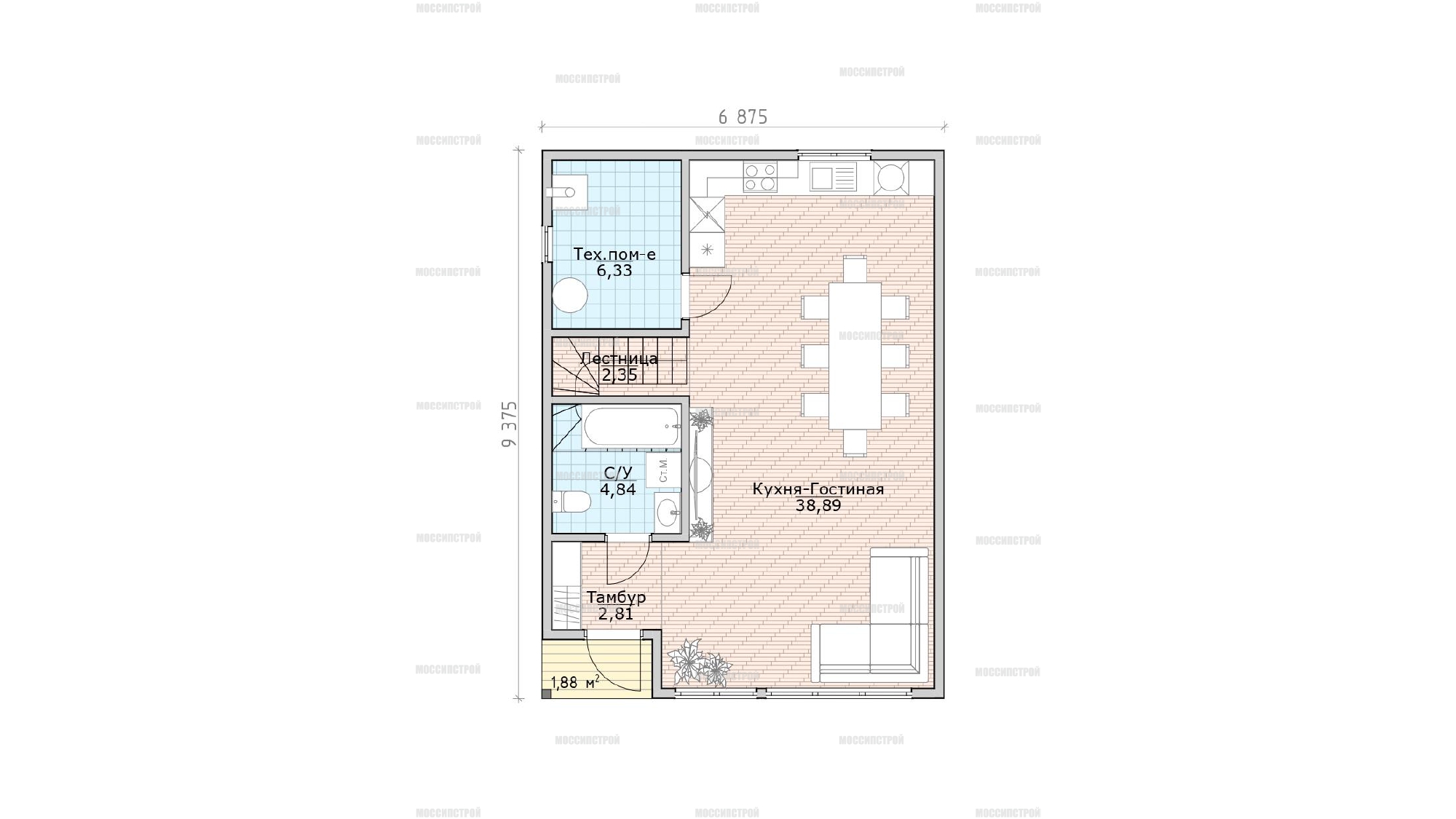 - Размеры, м: 6,785x9,375