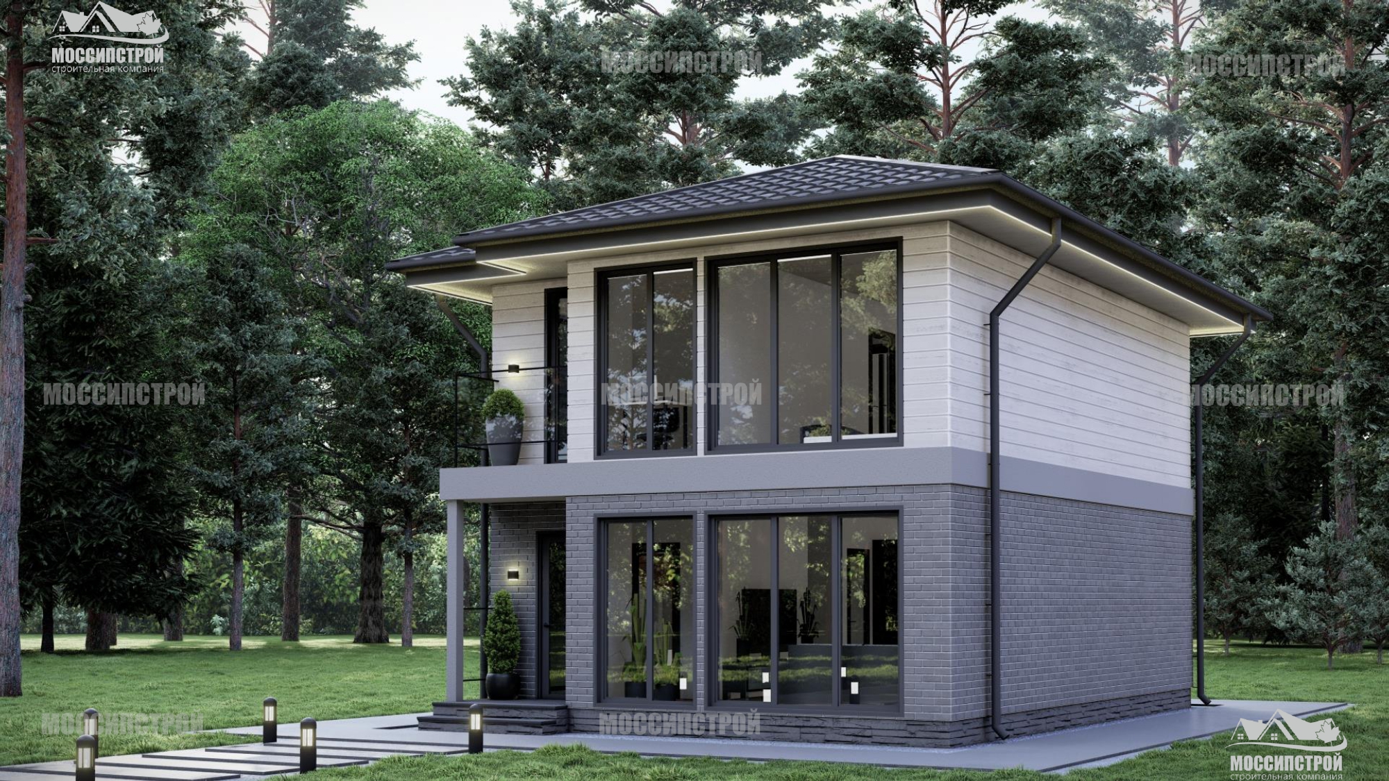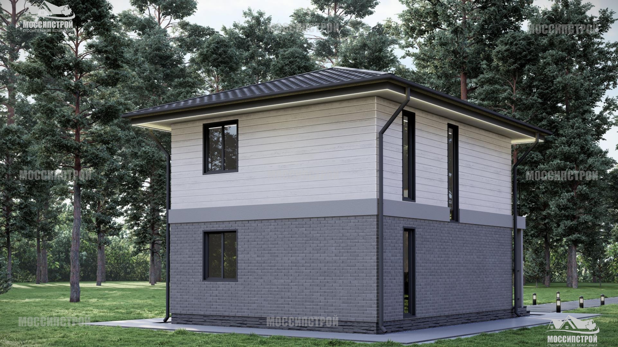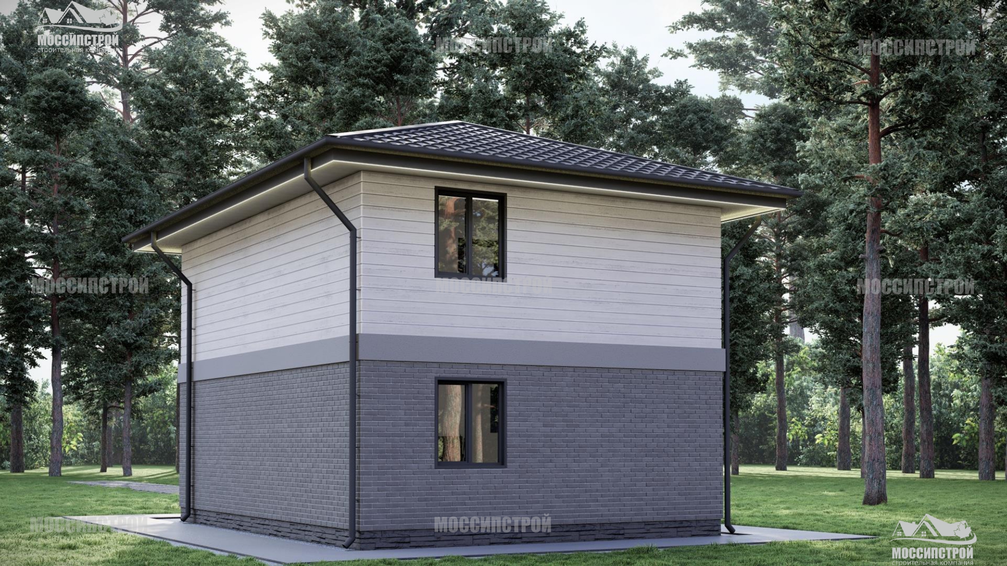 Комплектация Комфорт - включает в себя дом под чистовую отделку (фундамент, домокомплект, кровлю, окна, входная дверь, наружная отделка + монтаж)